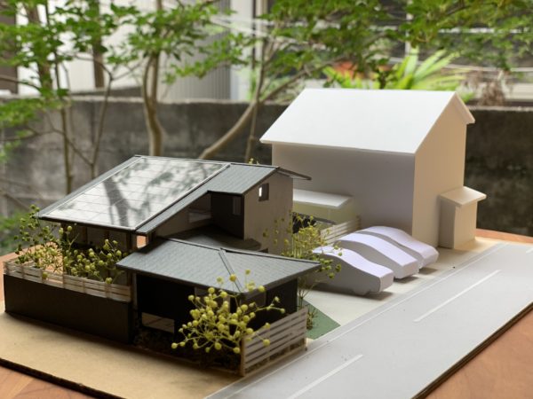 同一敷地に親世帯、子世帯の家が別棟で並んでいます。