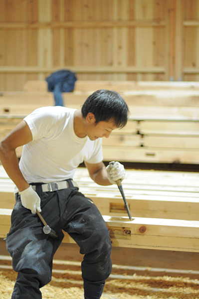石牧建築は木材に加工の目安となる印を墨でつけ、機械やノミなどの手道具を駆使して「刻む」という伝統的な大工技術を用いた建築をしています。