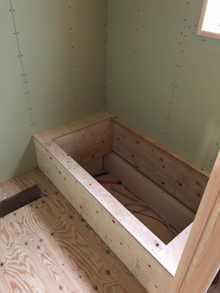 パーツを組み合わせてつくる在来風呂を施工してゆきます。