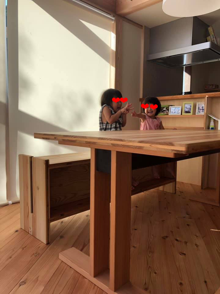 ダイニングテーブルの前に二人が座るベンチを依頼されました。