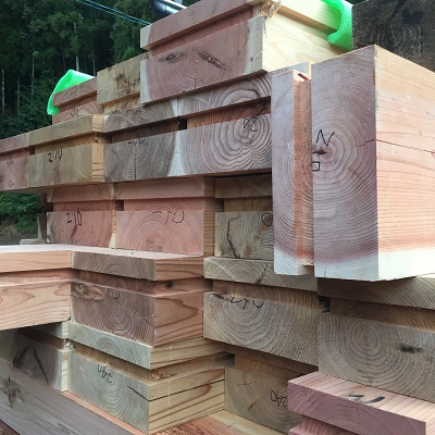 製材所から運ばれてくる材料は、4.5.6mと定尺の為、継ぎ手などを考えると木取りの仕方によっては端材が生まれます。