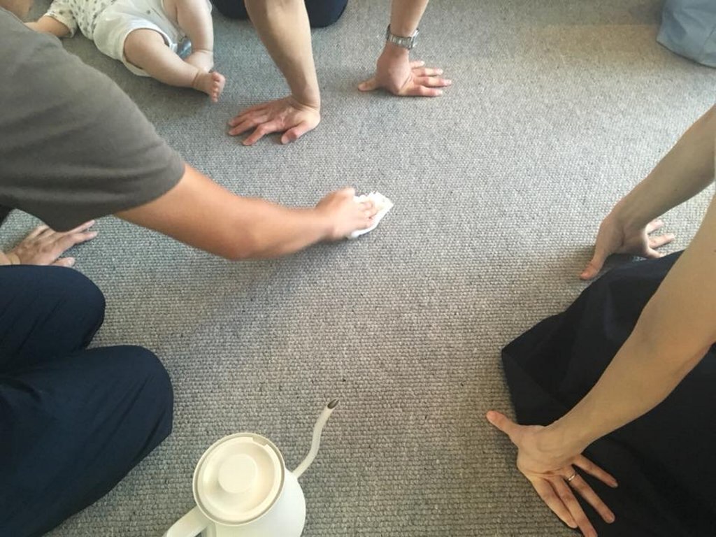 汚れた個所にお湯を掛け雑巾でトントンと叩く。