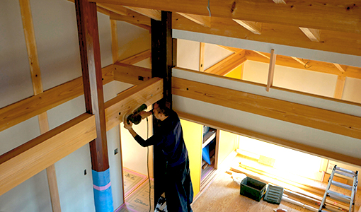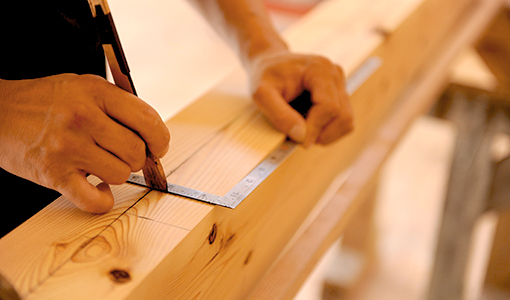 ・着手金のご入金 石牧建築は構造材のすべてを自社で加工するため、木材を発注し、墨付け・手きざみを行います。
