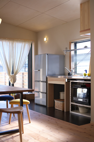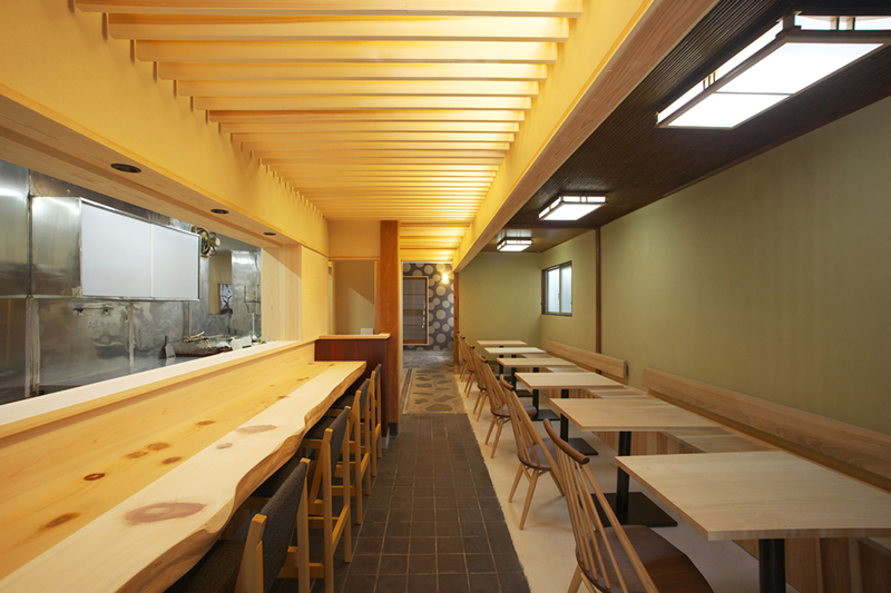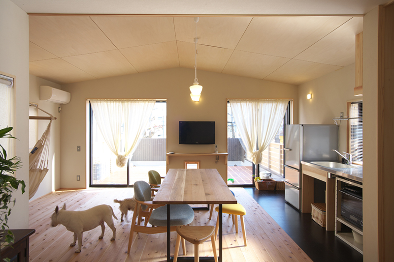 うなぎ屋さんの家 [工法規模]鉄骨造2階建て [延床面積]177.22㎡ 設計:しましま設計室 Photo:Photographer 大関正行氏 -------- うなぎ屋さんの住居と店舗のリフォームです。お子さんたちが独立されたため、ご夫婦とペットたちがストレスなく暮らせるよう思い切った減築をしました。日当たりもよくなり、小さくても快適なワンルームの住まいです。