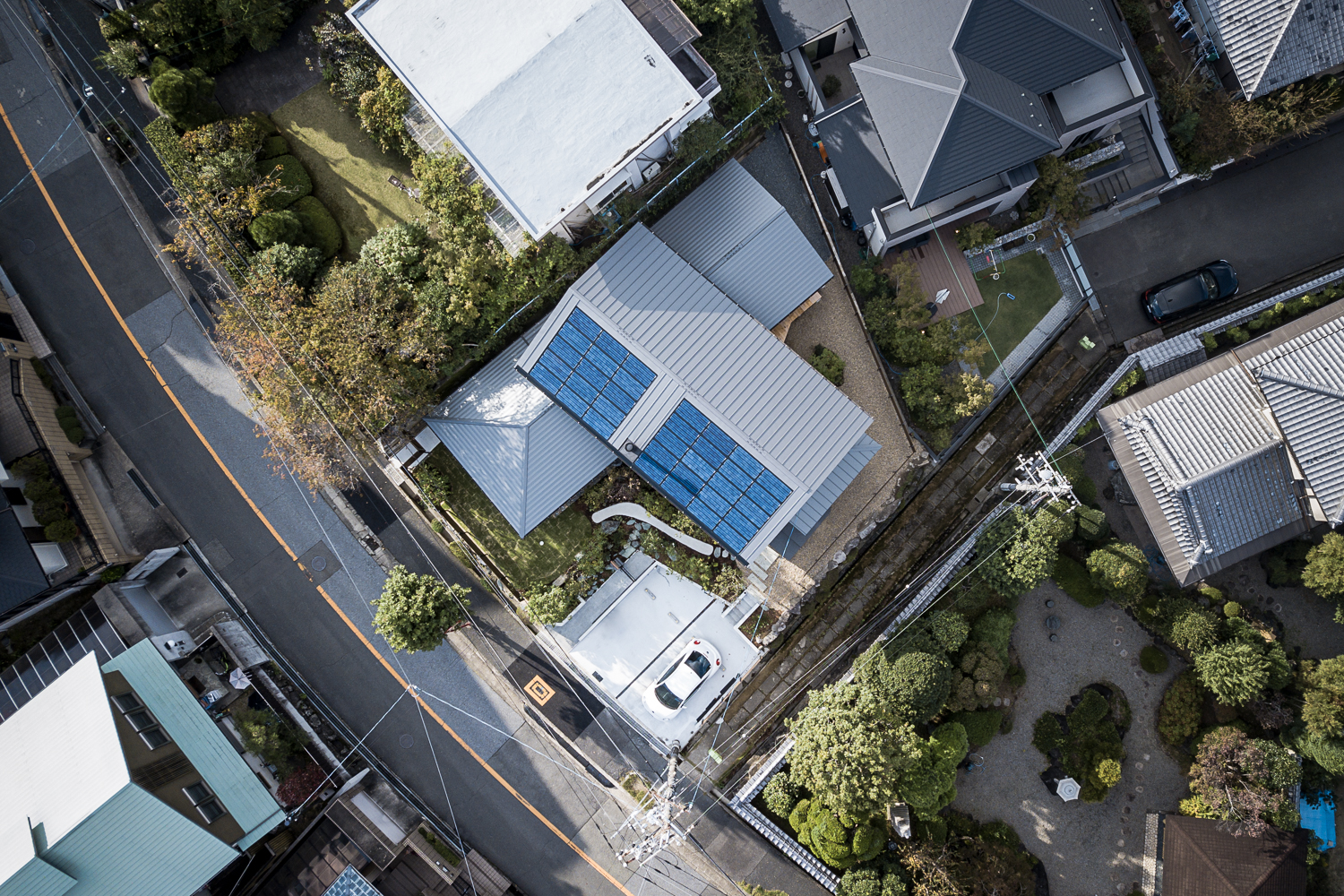 屋根には屋根材一体型の太陽光パネル(エコテクノルーフ)を採用しています。